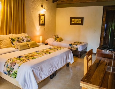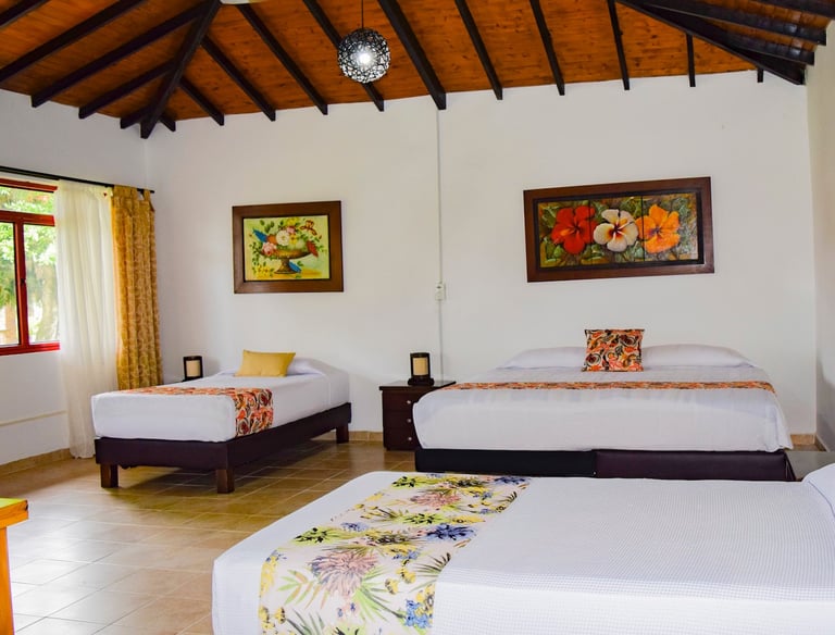 Finca Hotel La Tata Premium tiene capacidad para 20 personas distribuidas en 5 habitaciones dentro de la casa principal y 2 cabañas externas para 3 y 4 personas. Disfrute de un ambiente de elegancia y confort para relajar todos sus sentidos. (Estas imágenes son de referencia)