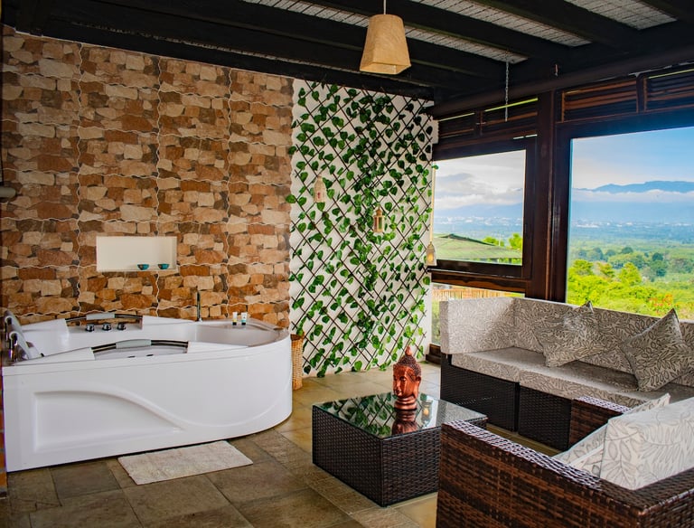Disfrute de un relajante masaje contemplando la espectacular vista del Valle del Quindío. Ubicada en el corregimiento de Pueblo Tapao (Montenegro) a solo 10 minutos en automóvil del Parque del Café.